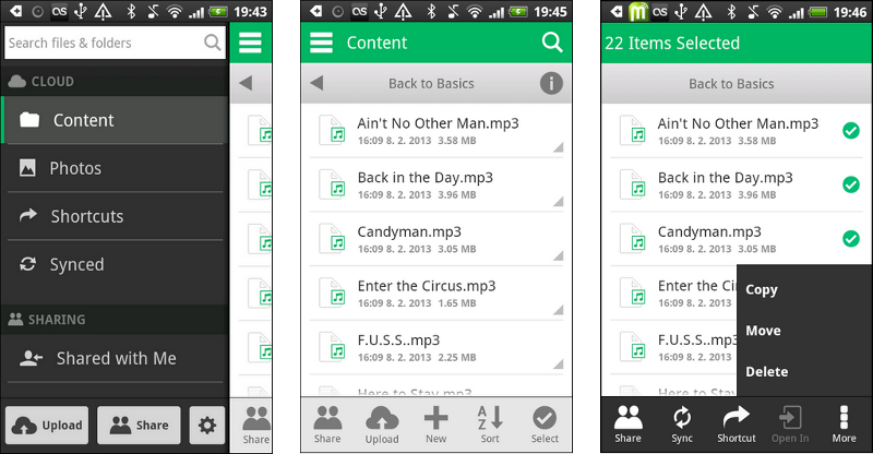 Aplikace také samozřejmě podporuje klasický přístup k vlastním a sdíleným souborům v cloudovém úložišti, které lze stahovat do paměti zařízení anebo otevírat v příslušné nainstalované aplikaci třetí strany. Samotná aplikace SugarSync disponuje poměrně vydařeným prohlížečem fotografií a funkcí pro vytváření náhledů videí ve frekventovaných formátech.