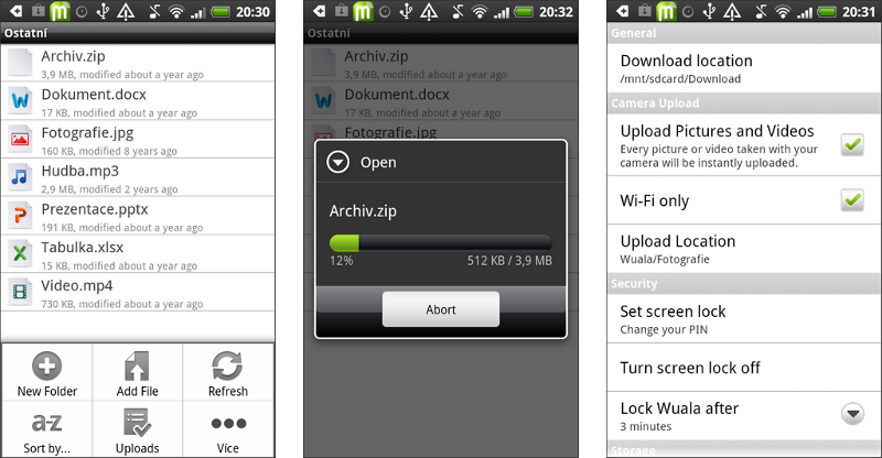 Vedle jednotlivých souborů je možné streamovat i celé složky, což se hodí například pro poslech hudby z cloudu prostřednictvím mobilního zařízení. Pochopitelně nechybí funkce pro nahrávání souborů z mobilního zařízení do cloudového úložiště včetně automatického zálohování fotek a videí pořízených mobilním zařízením do volitelné složky v cloudovém úložišti.