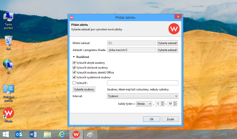 Nicméně zálohování nemusí apriori běžet nonstop. Wuala podporuje jeho automatické provádění ve určenou dobu. Zálohování lze spustit každou hodinu ve stanovenou minutu, každý den ve zvolený čas, jednou týdně ve vybraný den a čas či jednou měsíčně opět v den a čas, který si uživatel vybere. Každá zálohovací úloha přitom může mít jiné nastavení.