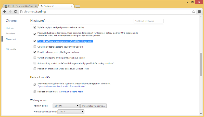 Prohlížeče si k vyššímu výkonu pomáhají také různými triky. Například Google Chrome a Internet Explorer využívají předběžné načtení webových stránek, takže při kliknutí na odkaz se daná stránka již nenačítá z internetu, ale z mezipaměti prohlížeče, což je samozřejmě o poznání rychlejší. Své také odvádí priorizace při načítání jednotlivých prvků webových stránek.