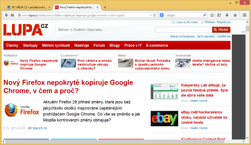 Zatím Mozilla dotáhla do ostré verze Firefoxu sérii úprav uživatelského prostředí známou jako Australis, která kromě jiného měla zlepšit jeho dlouhodobě kritizovanou pomalou odezvu. Uživatelé si však více všímají kontroverzního nového vzhledu a omezení možností přizpůsobení prohlížeče, ale to je zase jiné téma.