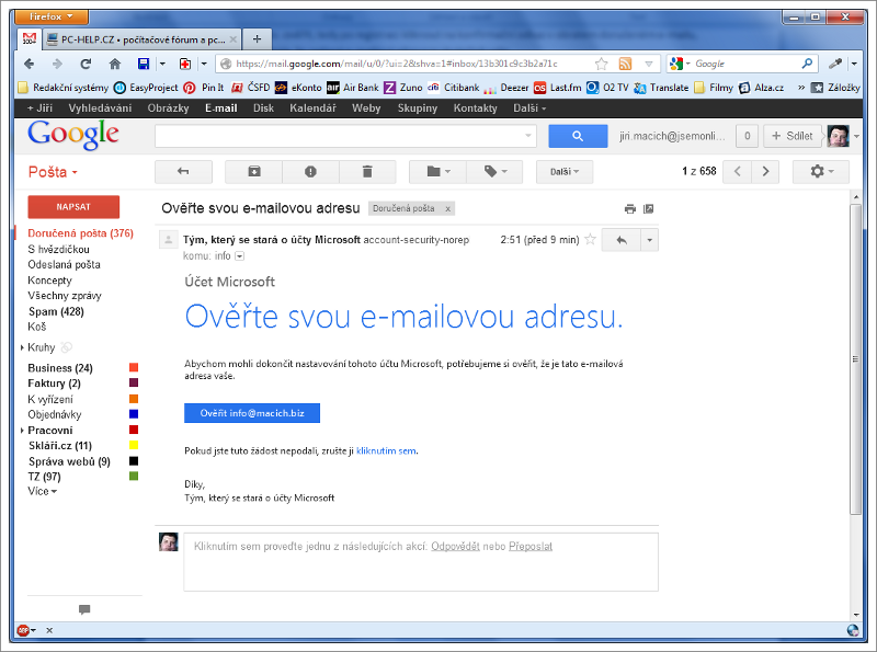 Pro Microsoft Account lze používat libovolnou již existující e-mailovou adresu od adresy z kterékoliv z bezplatných e-mailových služeb po adresu e-mailové schránky provozované na vlastní doméně. Stačí si ji tzv. ověřit, tedy po registraci kliknout na konfirmační odkaz v obratem doručeném e-mailu. Odkaz vede na stránku, kde již stačí zadat dříve zvolené heslo a tím je kontrola, že zadané e-mailová adresa je skutečně vaše, dokončena.