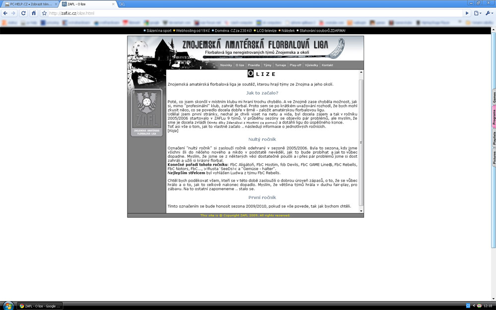 Re: Kritika webu Znojemské amatérské florbalové ligy*