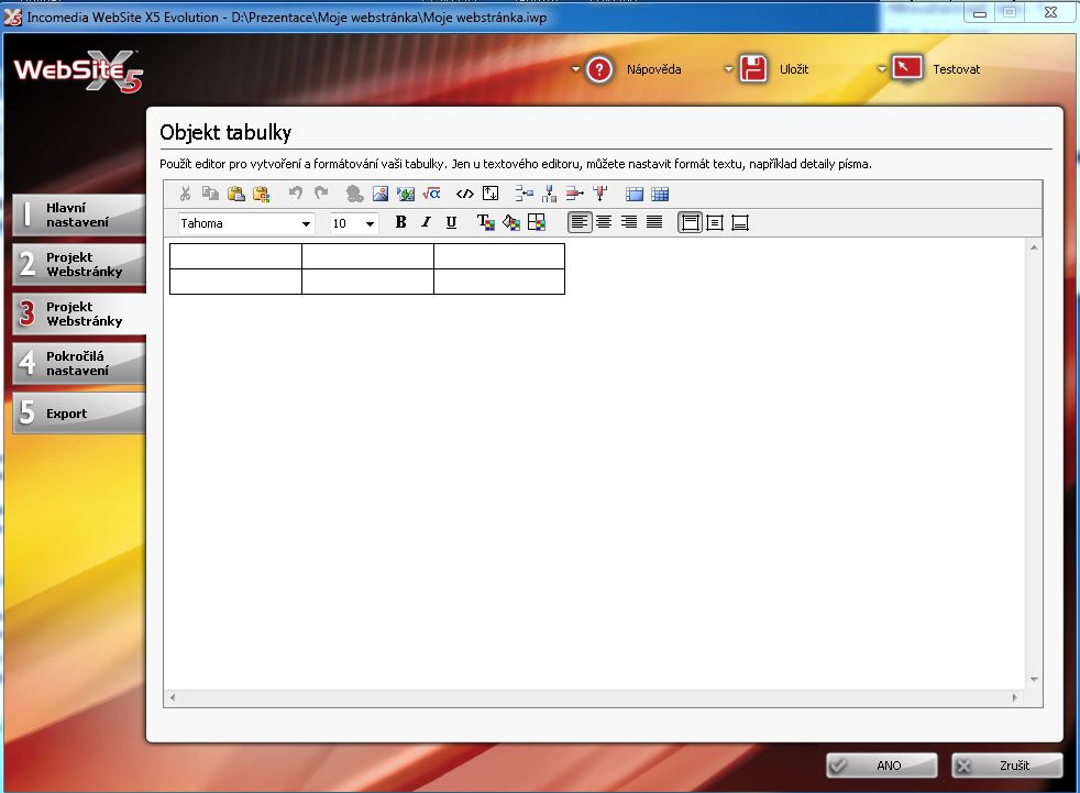 WebSite X5 - práce v objektu tabulky Vyřešeno