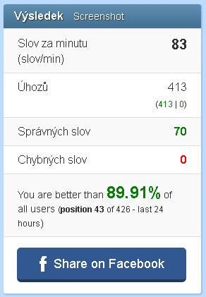 ne ne, já mám méně úhozů za minutu než ty. Jen jsem volil ta správná písmenka :lol: