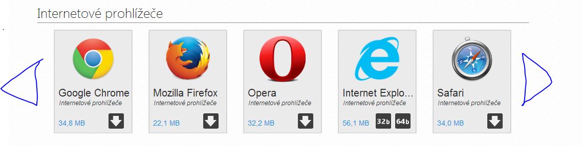 simio.simsoft píše:Můžu mít ještě připomínku? Na úvodní stránku bych pro snadnější prohlížení přidal k jednotlivým kategoriím šipky pro posouvání. Představoval bych si to nějak takhle.