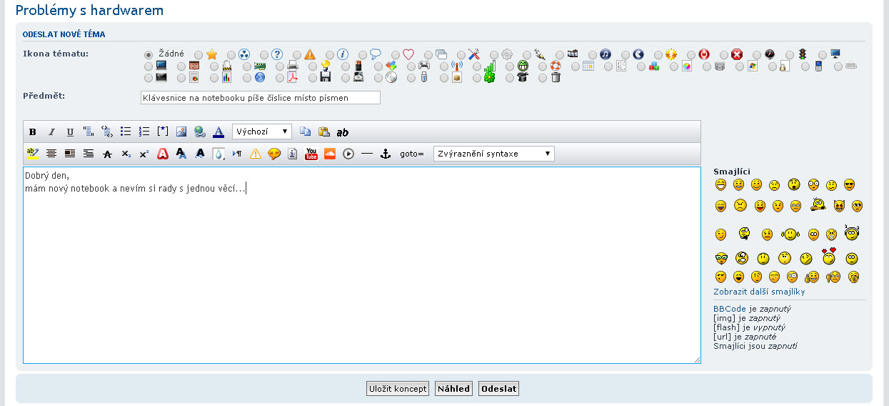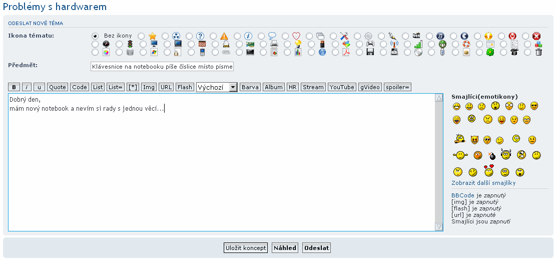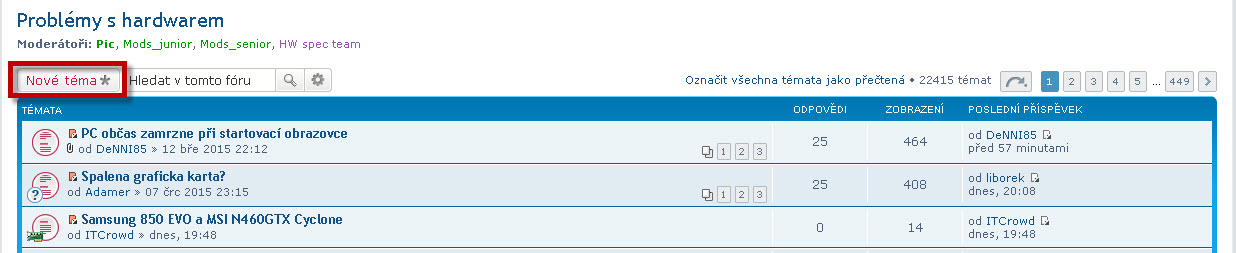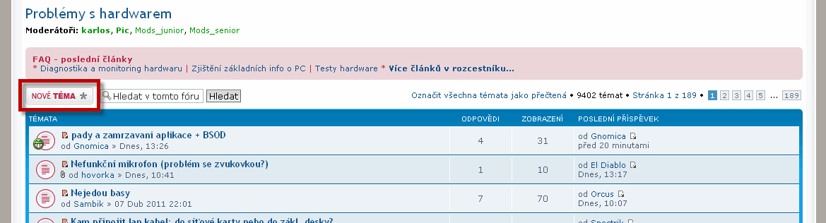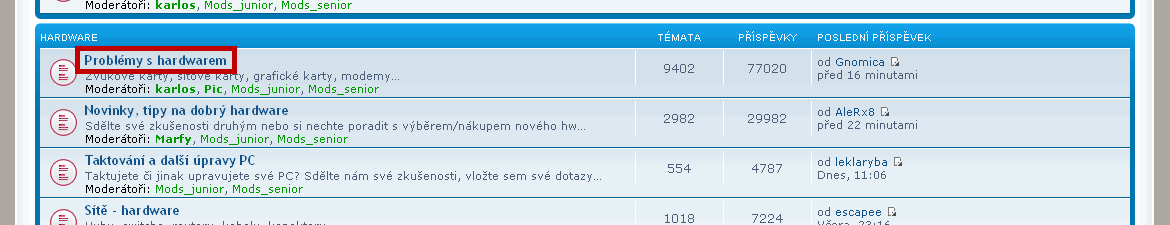 - chcete-li např. řešit problém s vaší klávesnicí, z hlavní stránky fóra otevřete fórum "Problémy s hardwarem"