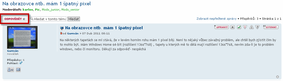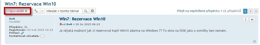 - pokud si přejete odpovědět na téma, otevřete ho a klikněte na tlačítko ODPOVĚĎET (naleznete ho vlevo nahoře nebo vlevo dole)
