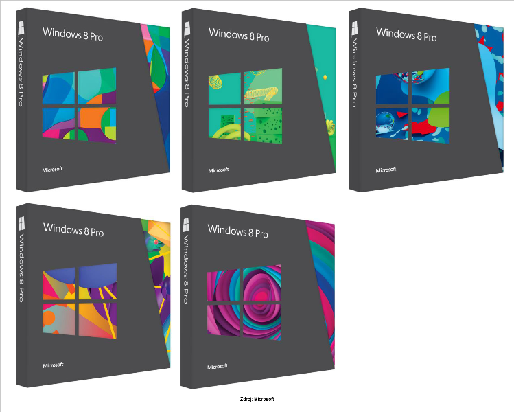 Microsoft též ukázal krabice, ve kterých budou Windows 8 Pro k dostání. Celkem připravil pět různých designů. Z plastu přešel na papír, což snížilo hmotnost krabic zhruba o čtyřicet procent. Výroba má být ekologičtější díky nižším emisím skleníkových plynů. Levnější a ekologičtější kvůli nižší hmotnosti krabic též má být jejich distribuce.