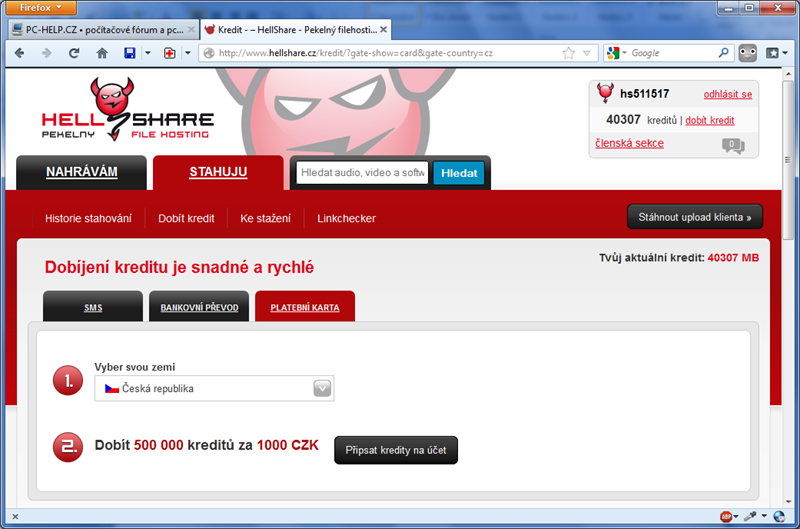 Heroes Killer píše:Např. částka za kredit na hellshare je sice směšná, ale přesněji směšně vysoká.