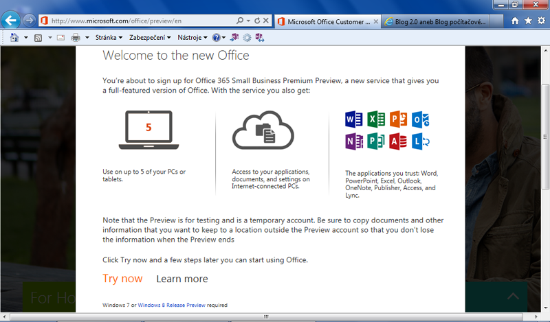 Špatnou zprávou je, že nová sada vyžaduje Windows 7 nebo Windows 8. Dřívější verze operačního systému od Microsoftu nebude již podporovat. Zkušební verzi pro tyto dva systémy si je možné stáhnout z webu Microsoft TechNet. Na výběr je mezi 32bitovou i 64bitovou variantou nejlépe vybavené edice Professional Plus. Česká lokalizace zkušební verze není a nebude k dispozici.