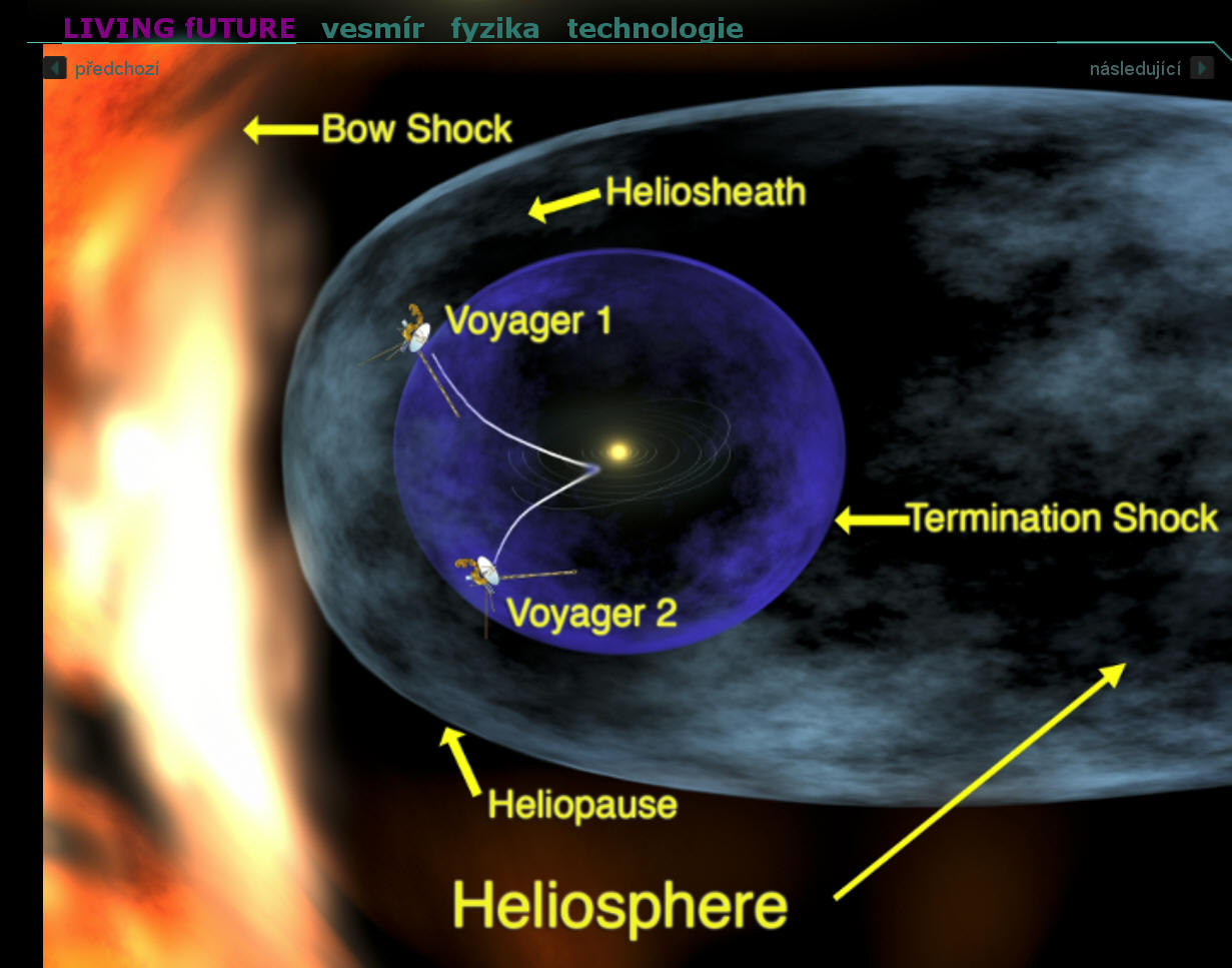 Heliosheath - deformace magnetického pole Slunce na okraji sluneční soustavy objevené s pomocí přístrojů vesmírných sond Voyager 1 a Voyager 2