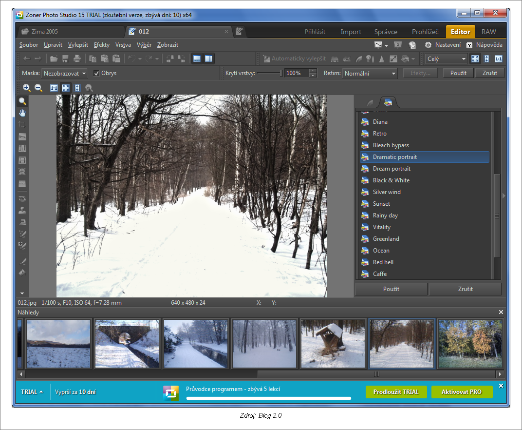 Zoner Software uvolnil již patnáctou generaci svého populárního programu pro prohlížení, úpravy a správu digitálních fotografií. Nové Zoner Photo Studio 15 přináší několik zajímavých novinek. Výrazně vylepšeny byly možnosti importu. Fotky lze snadno a rychle získat nejen z digitálního fotoaparátu, ale třeba i z digitální videokamery, z flash disku či paměťové karty. Pro každé zařízení je možné použít vlastní nastavení importu.