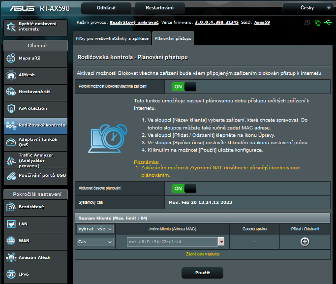 A nechybí ani možnost časového omezení přístupu k internetu.