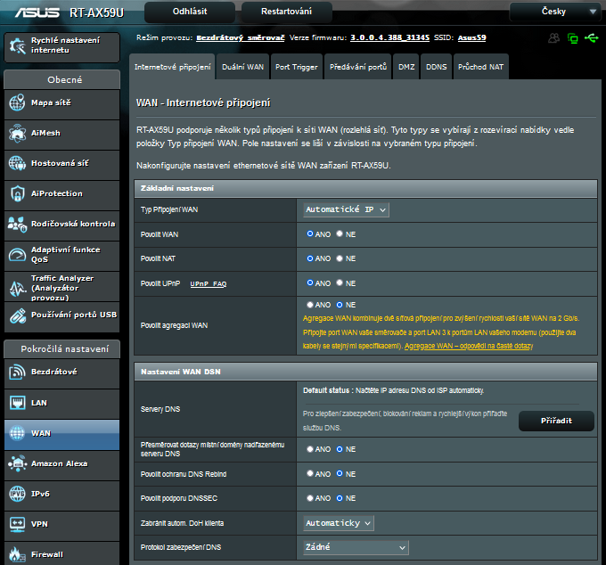 WAN - najdete zde vše potřebné pro připojení k poskytovateli. A chválím rozšířenou možnost nastavení DNS.