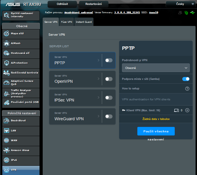 VPN - pokud potřebujete bezpečné připojení přes VPN, ani toto není problém. Router nabízí snad všechny známé možnosti.