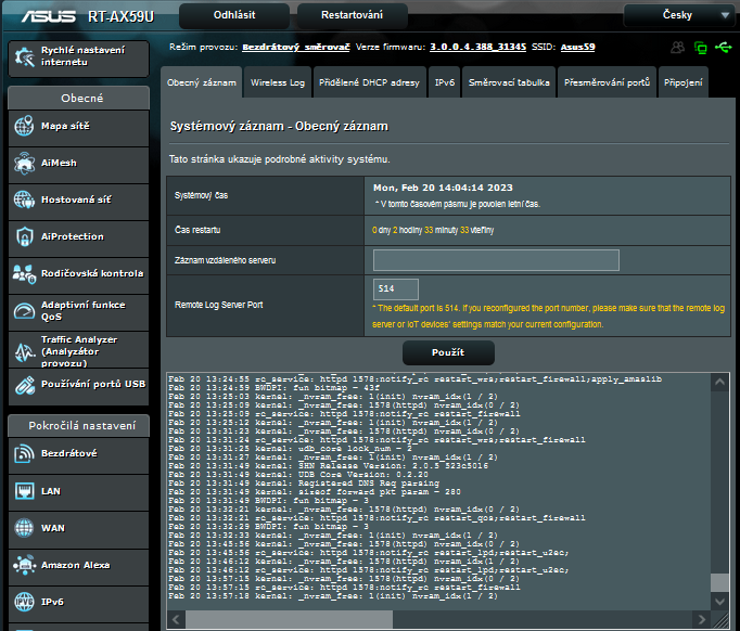 Logování - vše, co router provádí se loguje. A romě toho jsou zde záložky zvlášť pro WiFi a DHCP. Což oceníte v případě, kdy máte podezření, že se k vyší síti někdo neoprávněně připojuje.
