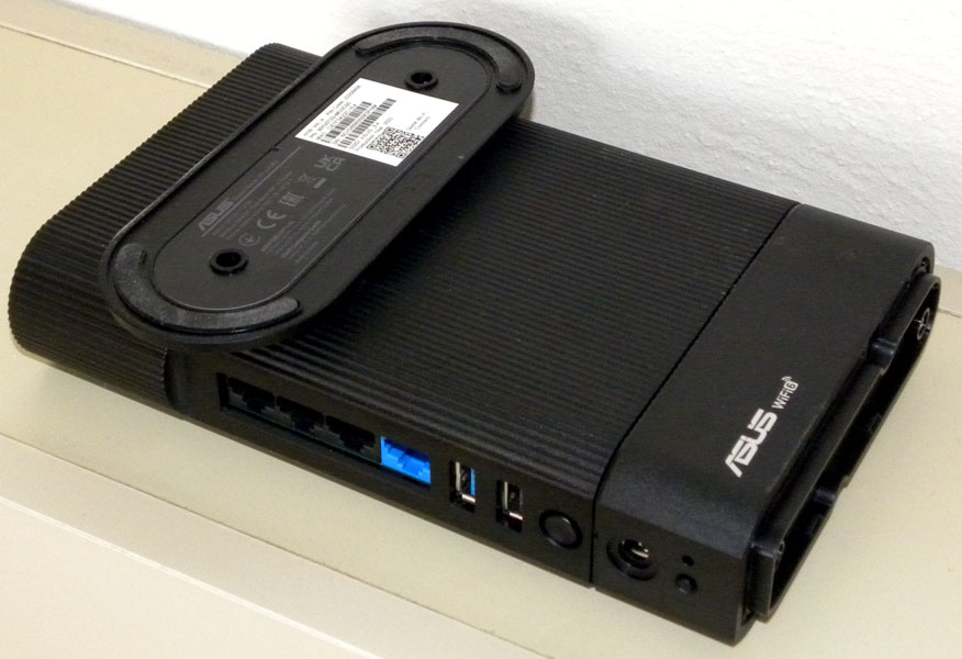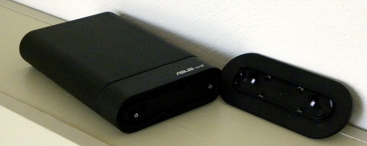 Router lze i připevnit na zeď, řešení je vtipné. Prostě odloupnete nohu zespodu a připevníte ji na bok. A funguje jako držák. Výhoda? nemusíte hledat držák, pokud jste se rozhodli změnit umístění.