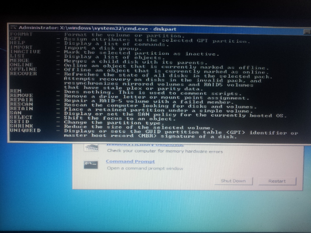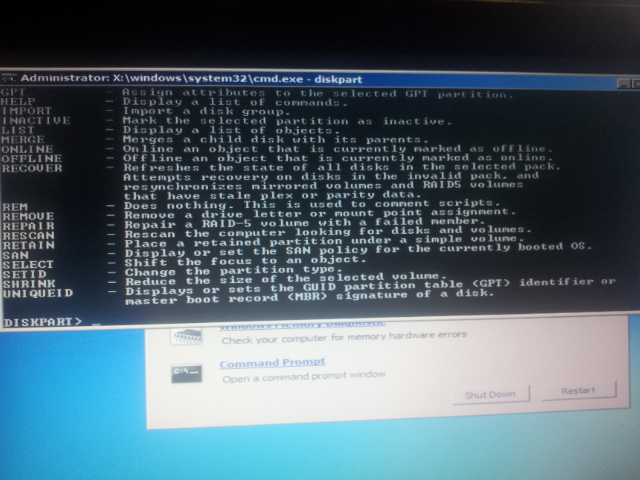 Ty dva příkazy samozřejmě nezadáváš v Diskpartu ale přímo v příkazovém řádku.