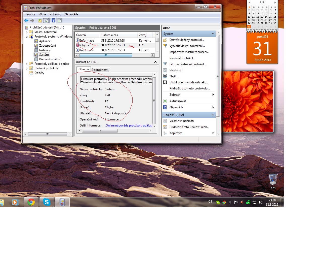 Tady výpis s prohlížeče událostí http://leteckaposta.cz/582773329
