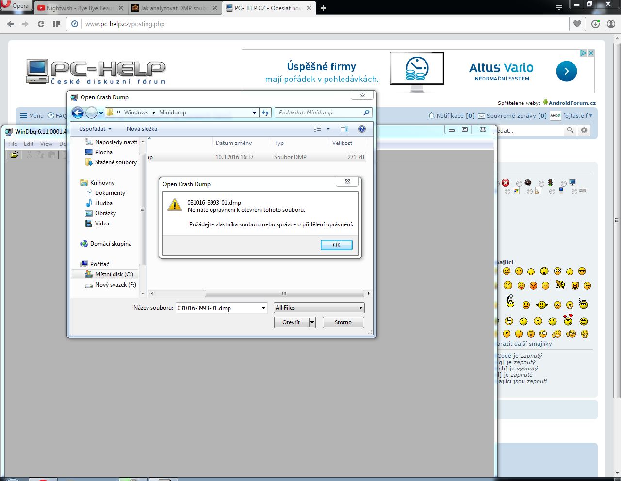 Re: Nelze otevřít složku minidump