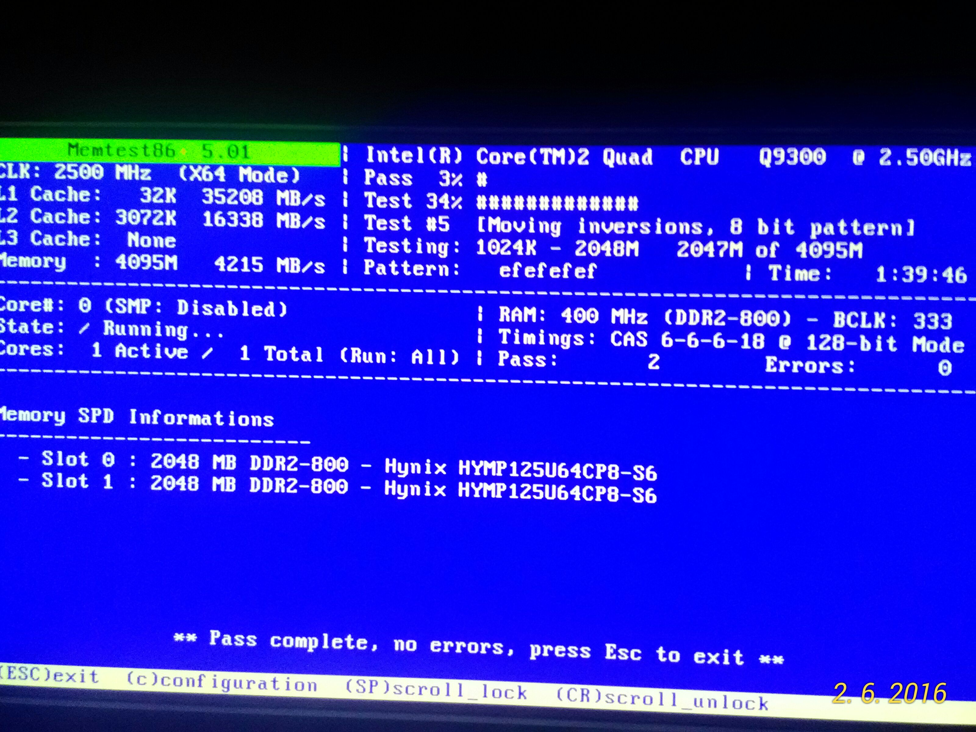 Test paměti Memtestem vyšel bez závad, viz. foto v příloze. Ještě vyzkouším test disku.