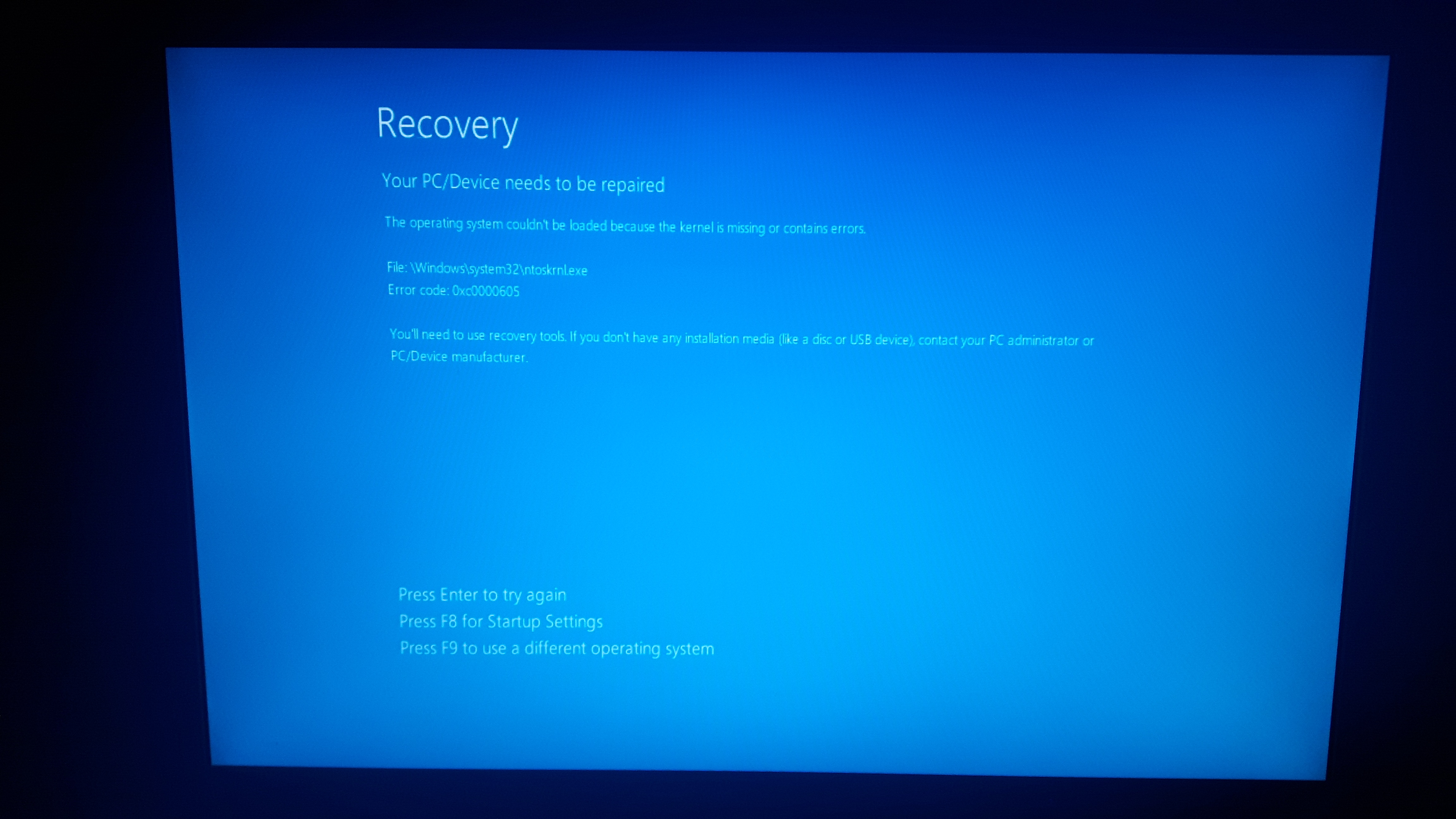 chce to po tobě instalační médium, aby z něho moh bejt opravenej systém...