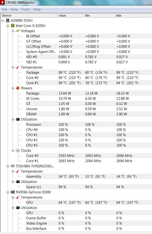 Samozřejmě, že teplota musí být nižší, jelikož při 100°C dochází ke snižování výkonu CPU, aby se už více neohříval. Dej to IT specialistovi ve firmě, aby s tím něco udělal.