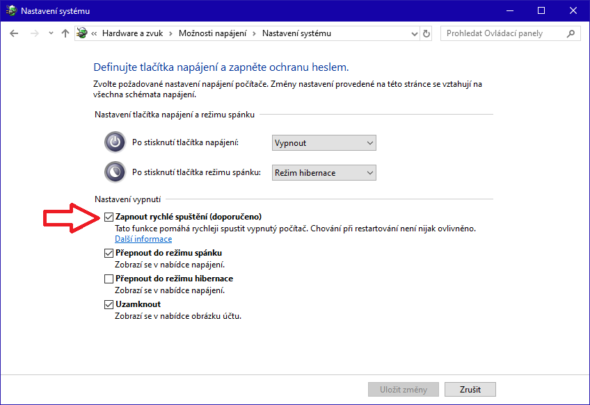 Na vypnutí rychlého spuštění jsem potom už přišel i sám.
