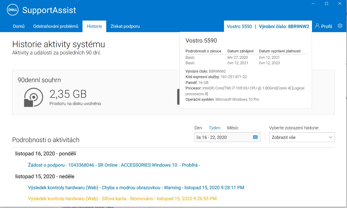 vostro? ... na ten by měla být 3 roky NBD záruka ... dělal jsi registraci na stránkách Dell? Tam je psáno, jaká zárukaa a do kdy platí ... a jak postupovat ...
