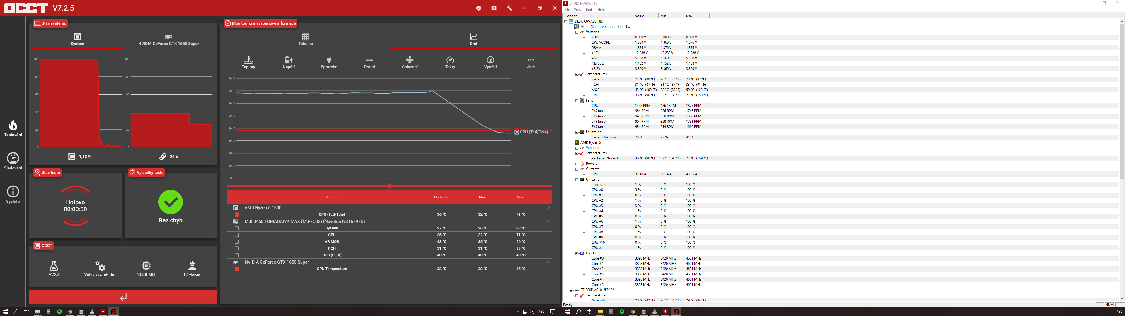 Test zátěže po 10ti minutách v OCCT viz příloha