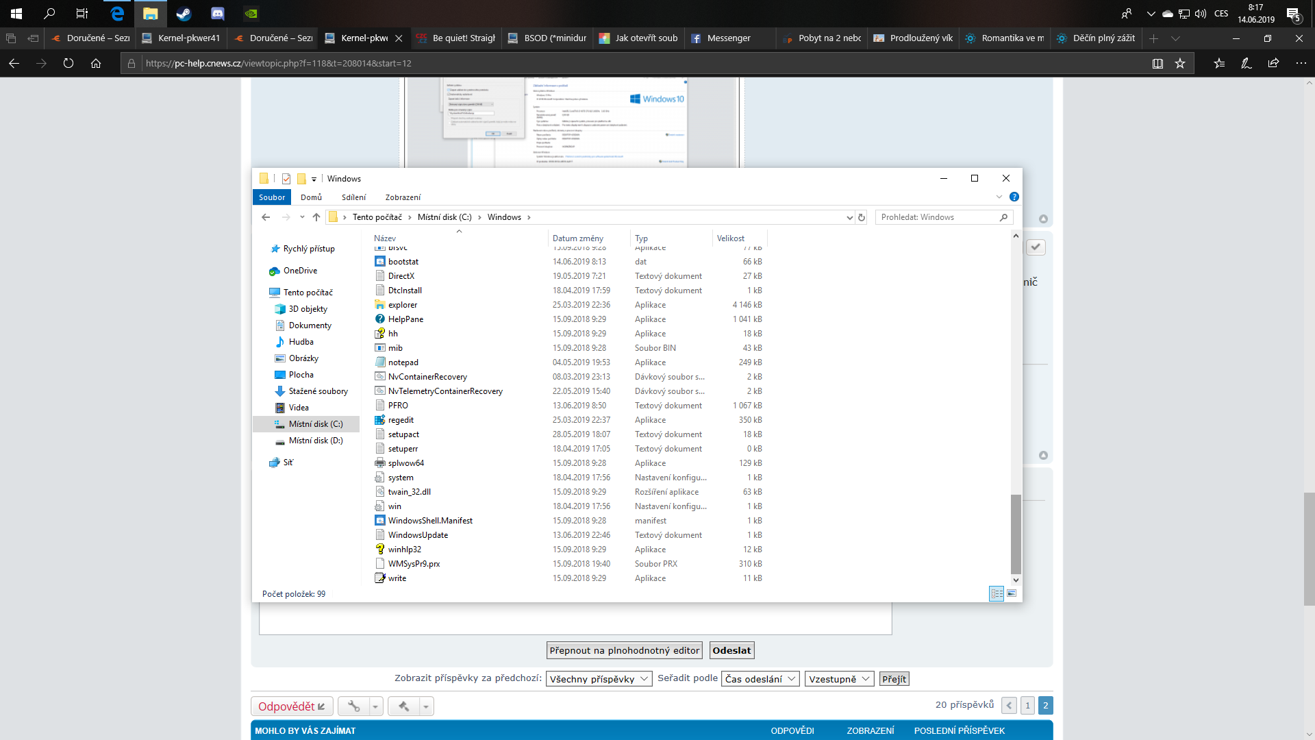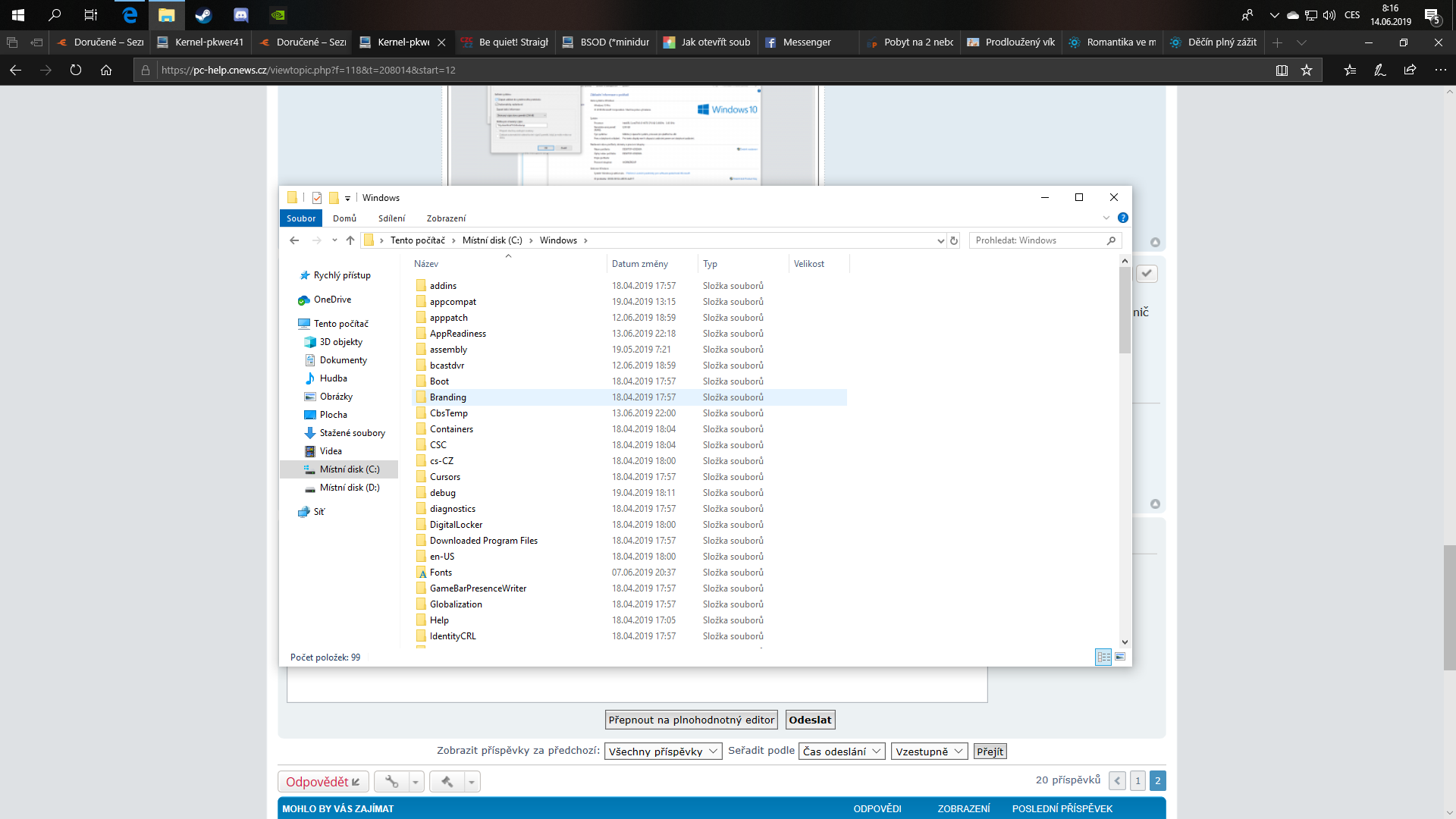 Když jsem hledal MINIDUMPY tak jsem našel složku WINDOWS i dokonce MINIDUMPY v disku