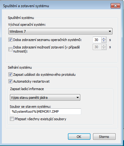 Máš povolený výpis? Ovládací panely - Systém a zabezpečení - Systém - Upřesnit nastavení systému - Spouštění a zotavení systému - Nastavení