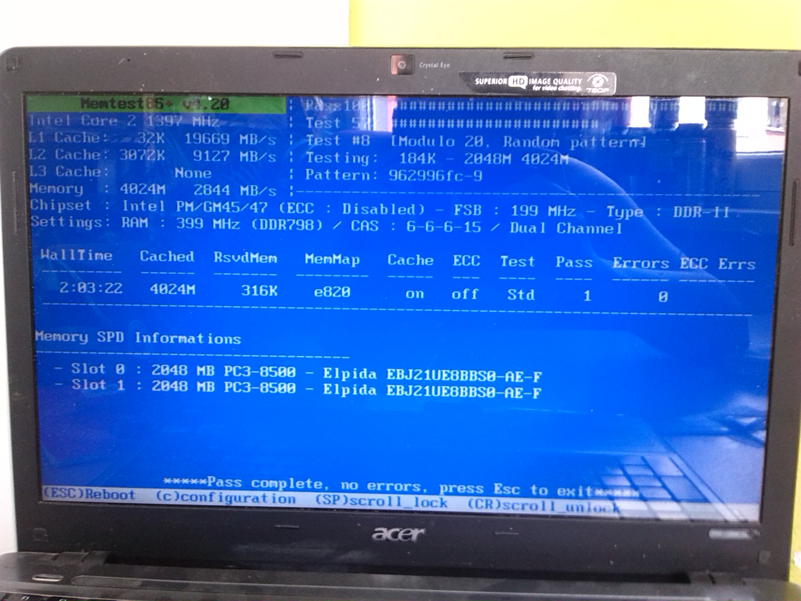 memtest86+ v4.20 nic žádný error snad nevadí že to je starší verze 4.20 než je aktuální protože já měl na flash disku už hirens boot cd a tam memtest je