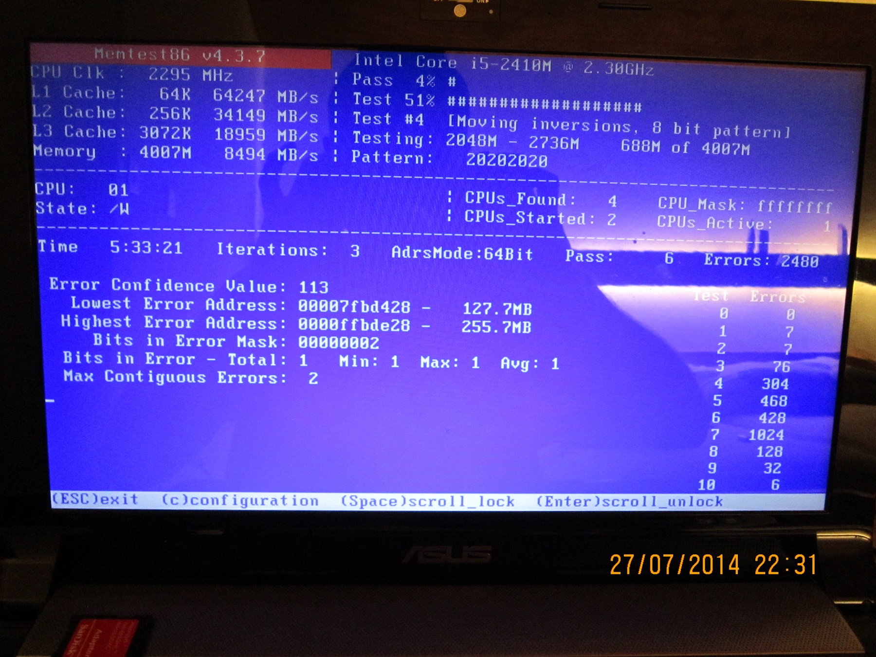 Takže spravil som Mamtest...nechal som to bežať skoro 6hod....dufam že stačí...ale neviem či to potom ukladá nejaký LOG. O tom som info nenašiel tak pridávam foto...