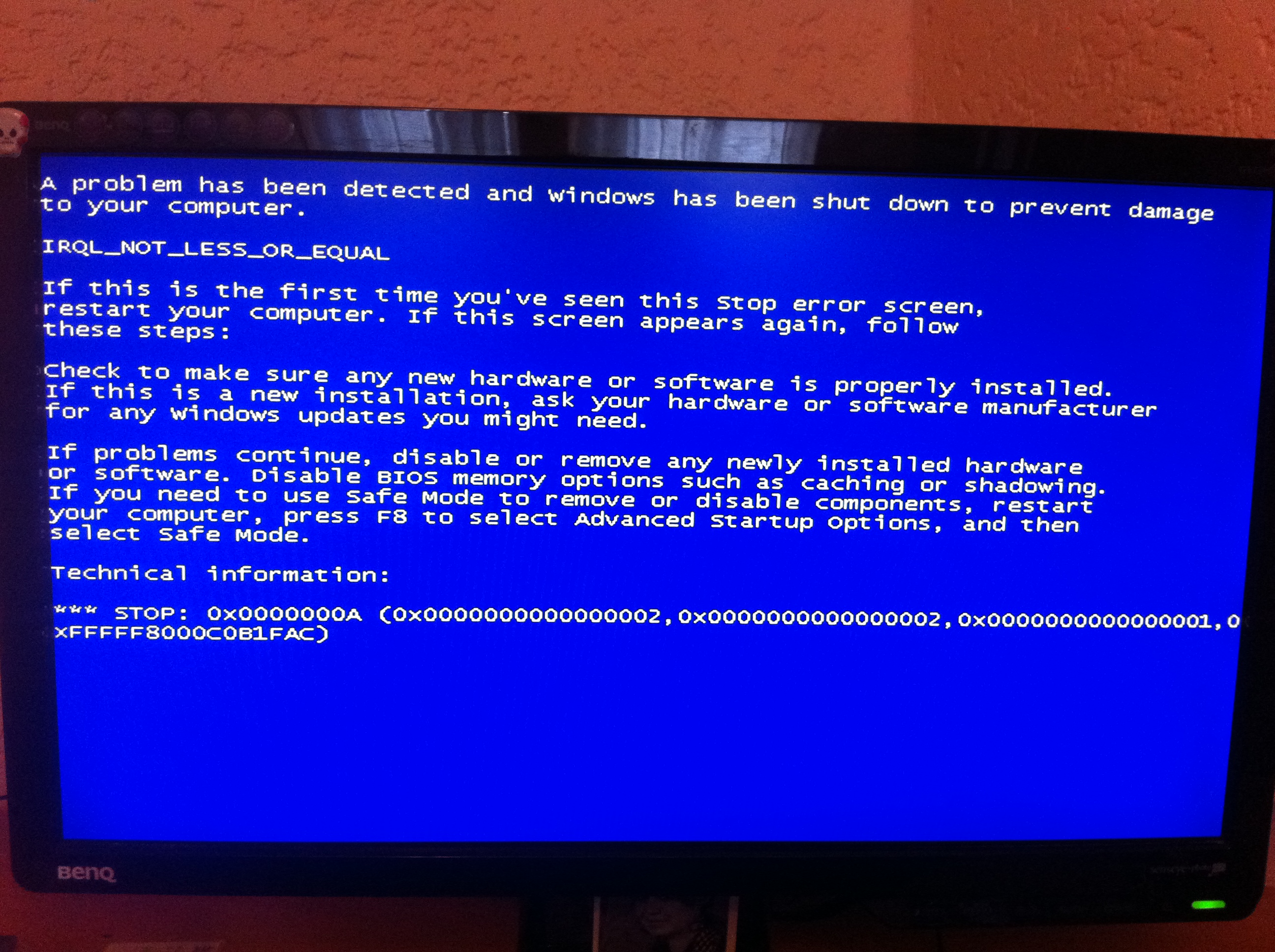 Ahoj, pořídil jsem si do PC novou grafiku... po čase hraní mi pc sám od sebe spadl a začal se restartovat stále dokola.. usoudil jsem že to bude baterka od biosu.. a taky že jo vyndal jsem jí dal jsem tam novou zresetoval bios a počítač v klidu najel a fungoval 2 dny bez zmínky kdejakého problému.. až do dnes kdy opět spadl a nechtěl najet do windowsu .. opět jsem zresetoval bios a pc najel až do windowsu ale sotva se zapl tak hodil bluescreen .. proto nemám jak hodít výpis z dumpu nebo událostí.. tak alespon fotku BSOD, ale nevím zda z ní něco vyčtete