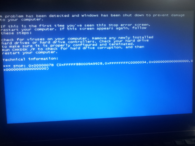 7B (jestli dobre vidim) byva nejcasteji UNMOUNTABLE_BOOT_VOLUME tedy OS nevidi disk nejcasteji kvuli chybejicimu ovladaci pro diskovy radic. Nemenil jsi v BIOSu nastaveni SATA rezimu (AHCI, IDE, RAID)?