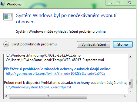 Dobrý den jsem teď na jednom notebooku není můj a před chvílí jsem ho vypnul a zničeho nic mi tam naskočila BSOD ... Nevím proč všechno jelo a jde jak má ... prostě jsem počkal než se to nějak dodělalo a vypnulo a zapnul jsem ho znovu ... žádný error normálně se nabootoval systém a teď z něho píšu sem. Takže by mě jenom zajímalo proč byl den BSOD dávám vám sem screen (hned po přihlášení do Win se mi na ploše zobrazilo upozornění ''Windows byl po neočekávaném vypnutí obnoven ... důvod BlueScreen a zbytek máte na screenu