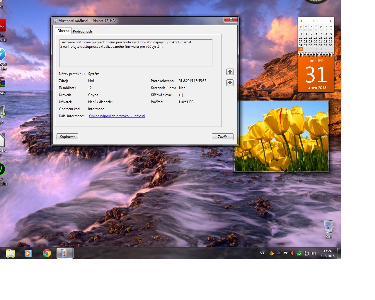 Ne přes pc jsem to nedělal.Jinak doplním že po režimu spánku mám v prohlížeči událostí tuto chybu
