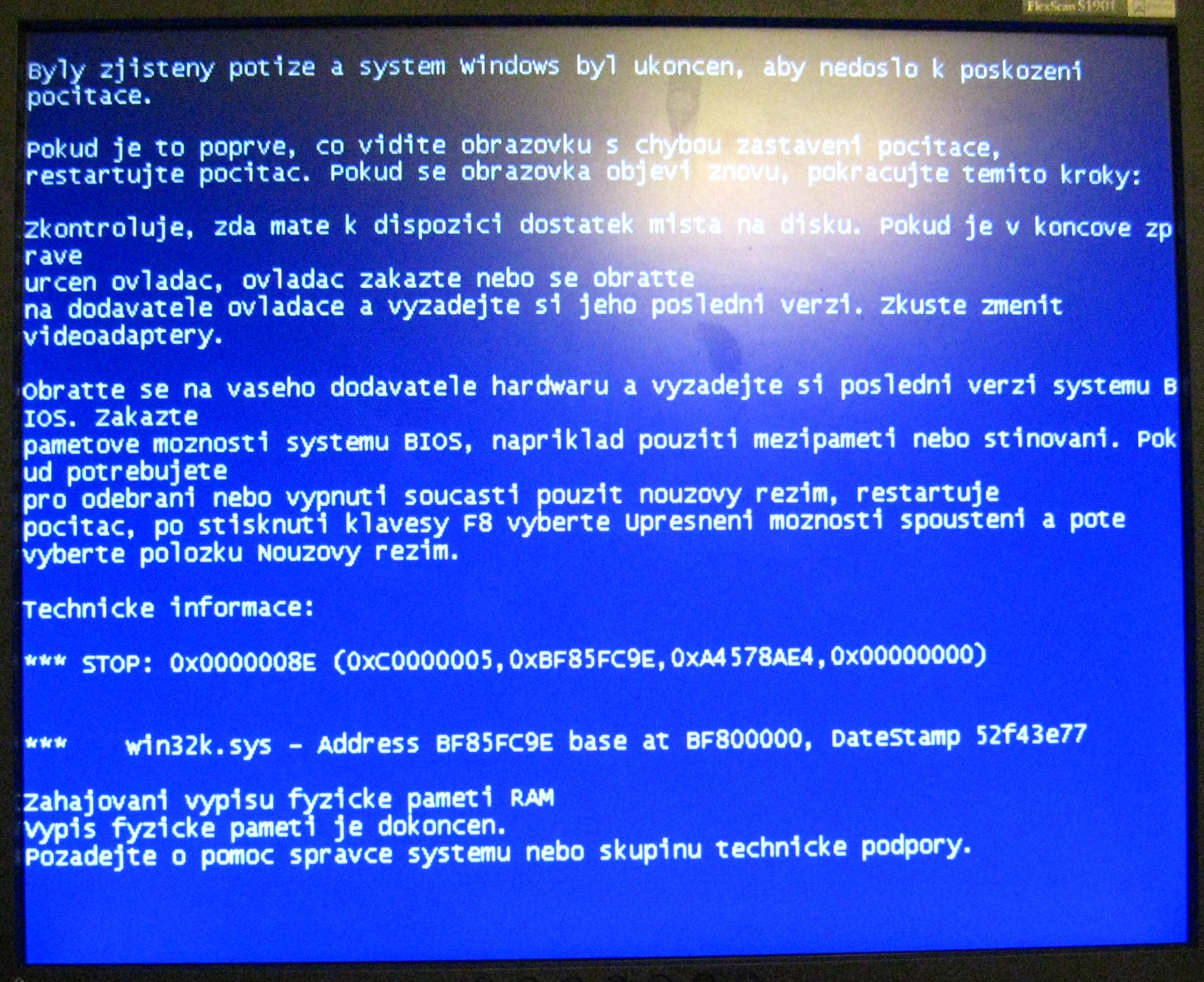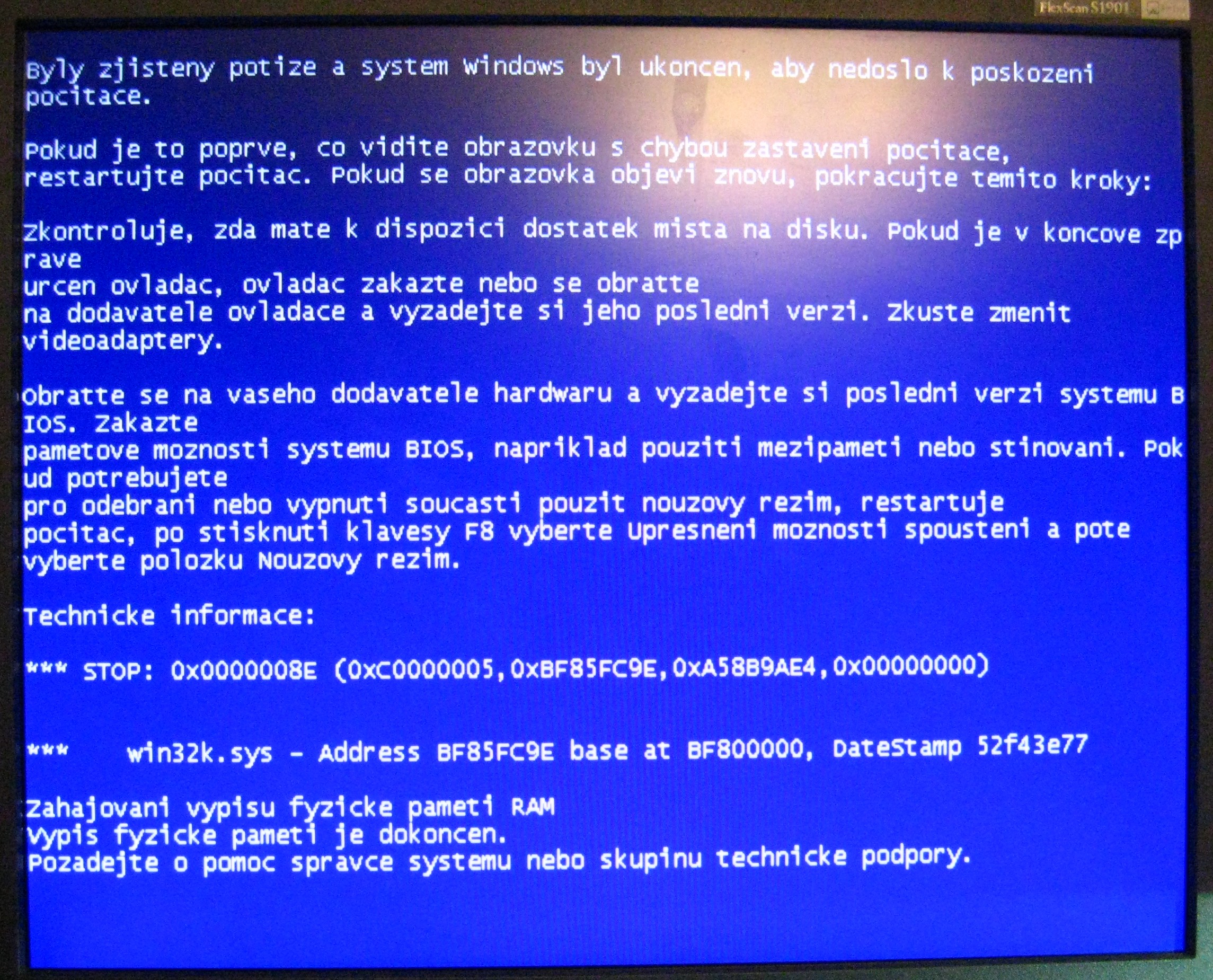 zas jsem měl modrou obrazovku smrti při ukončování internetového prohlížeče. Dám sem foto plus soubor MiniDump. Pokud se chcete na něco zeptat, napište.