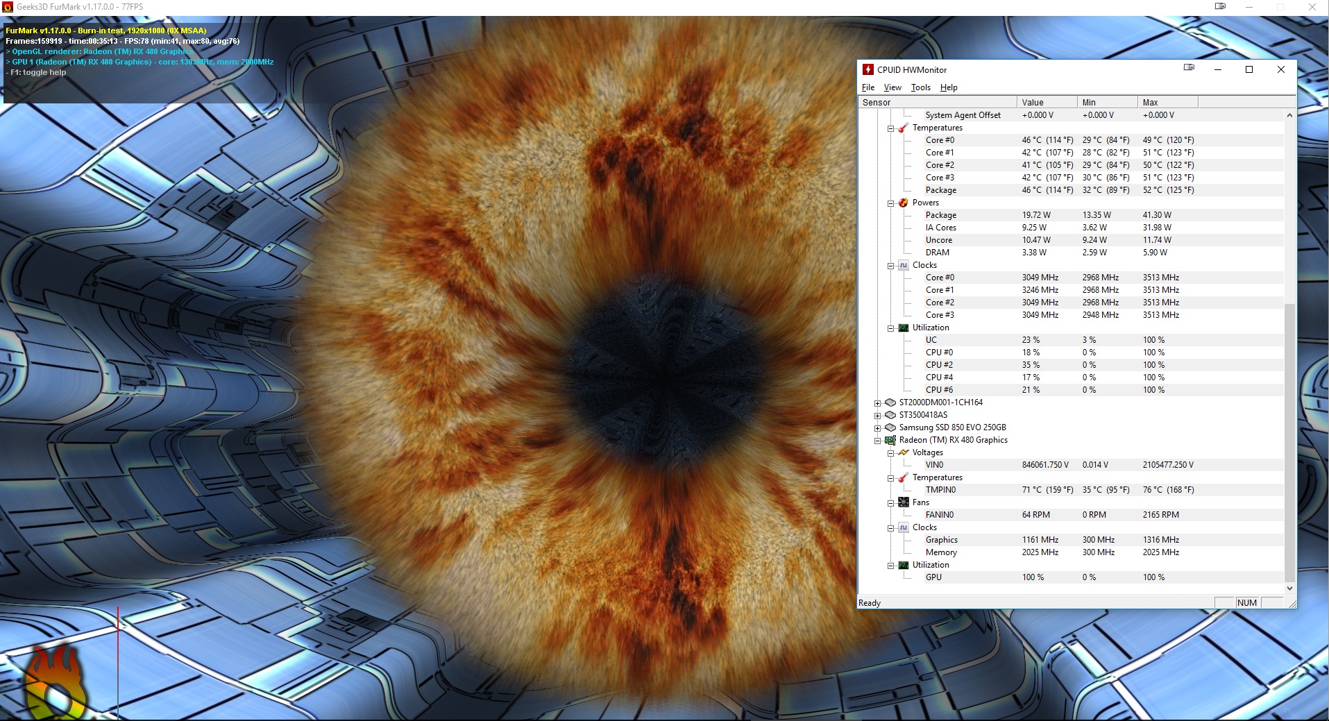 PS: Přihodil jsem ještě stress test samotné GPU. Připadalo mi, že HeavyLoad jí nedal vůbec zabrat.