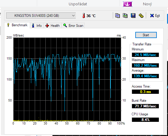 Aha, já si nevšiml, že máš SSD. Na to HD Tune není. No zkus si hrát s těma RAMkama.