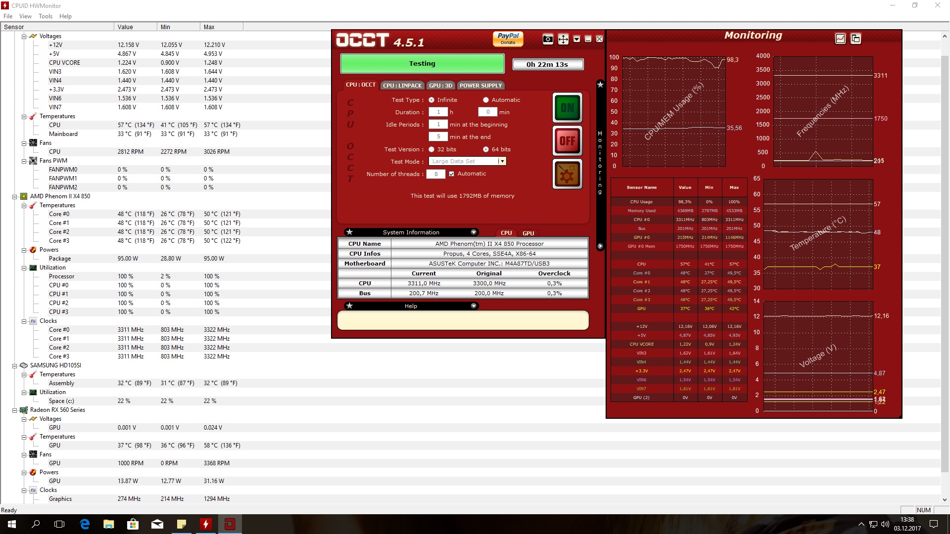 Zkoušel jsem sticky i pořadí různě proházet, výsledek stále beze změn a po spuštění Wargame: Red Dragonu opět po pár sekundách zamrzne PC, pomůže pouze restart. Dříve se to u karty nvidie popravdě nestalo, tak zkusím nainstalovat jinou verzi grafických ovladačů. Pro jistotu ještě jednou nahraji novější log událostí. Nechám počítač podrobit HD Tune, OCCT + (HWmonitor) pro případ, že by bylo na vině nedostatečné napětí některého z komponentů, nebo i nová grafická karta RX 560 od XFX. Její frekvence je oproti verze Pulse navýšena téměř o 80 MHz, ale i tak by nemělo k nějaké nestabilitě docházet. Screeny sem přihodím, až to budu mít. Pak tedy mi napadá pouze CPU,deska, nebo zdroj.