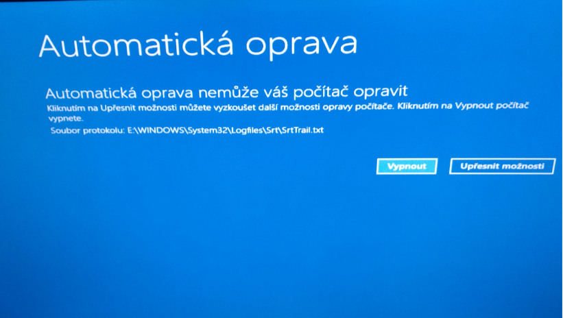 tak stále stejný problem ale pokaždé vyskočí že se automatická oprava nezdařila.