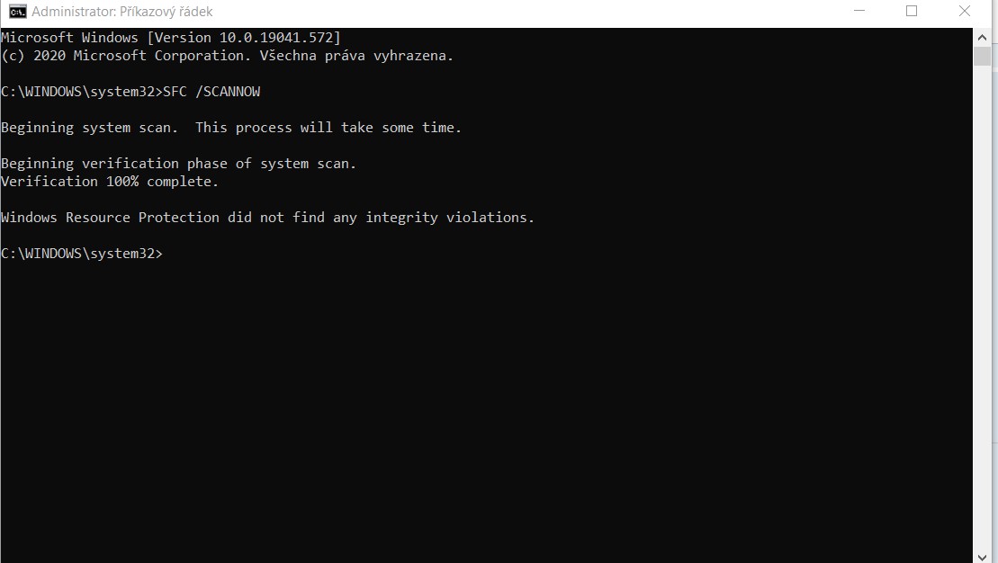 2. Spusť příkazový řádek jako administrator a zadej příkaz "sfc / scannow ".
