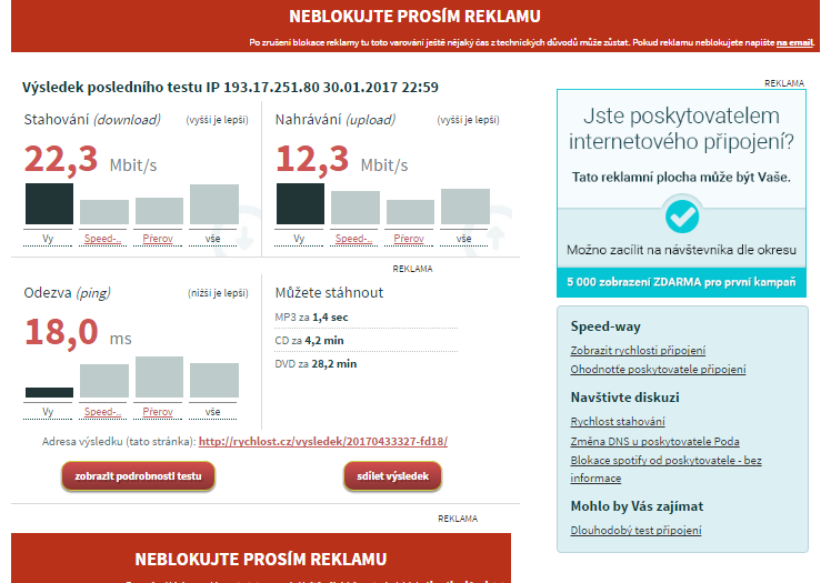 Chtěl jsem začít streamovat tak jsem si stáhl vše potřebné a zapl jsem to. Zkusil jsem streamovat hru H1z1 king of the kill,hned co jsem zapl stream(přes obs) tak mi naskočil ping. Zkusil jsem jinou hru např. League of Legends nebo Minecraft a lagy nebyly. Je to tím že je to náročnější hra tim pádem je větší ping nebo mám jen něco zle nastaveného ? Muj výsledek rychlosti internetu v příloze