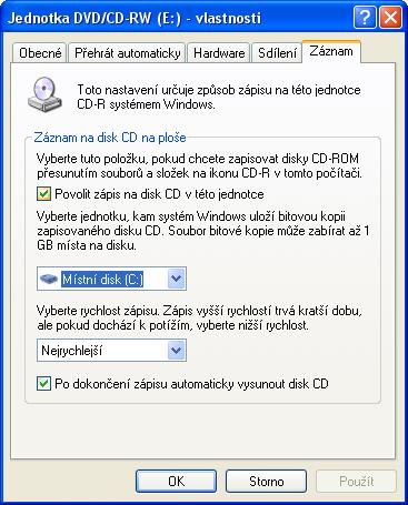 Nenašel jsem ve vlastnostech volbu "záznam" ( klikl sem na tento poč., pravým na jedn.DVD-RAM, vlastnosti...).Jo a ten Roxio Easy CD Creator co popisuje Microsoft nemám.