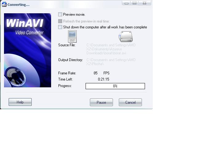 joj to ti mám udělat video jak to konvertuju z avi do dvd dobře někdy to trvá možná dýl tak do 30 min zaleží na velikosti filmu
