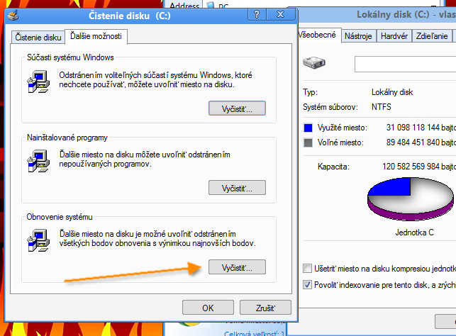 Ešte je možnosť vymazať staré body obnovy, tam býva aj niekoľko GB, ak sa nemažú pravidelne. Ísť na Tento počítač - Disk C - kliknúť pravým tlačidlom - Vlastnosti - Čistenie disku - chvíľku bude počítať a potom sa ukáže nová tabuľka - Tam hore prepnúť na ďaľšie možnosti - Obnovenie systému - Vyčistiť - odklikať OK. A už to potom môžeš urobiť rovno aj na D, lebo keď sa vymažú staré body obnovenia na C, nemá význam aby súčasti k ním trčali na D.