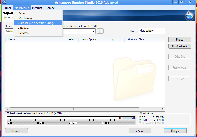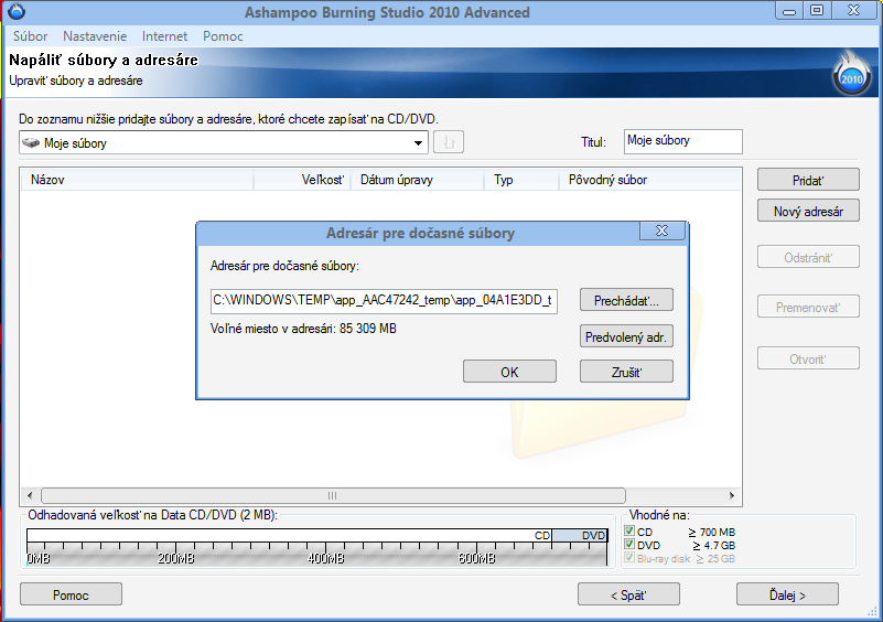 Ashampo při vypalování požaduje víc místa na disku C:.* Vyřešeno